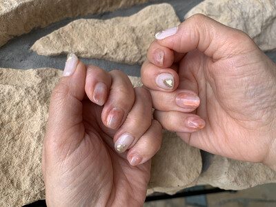 今回のネイルはさりげなく輝くミラーが可愛いニュアンスネイルです。
