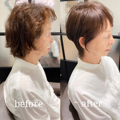 大人のお客様のカットのbeforeafter。