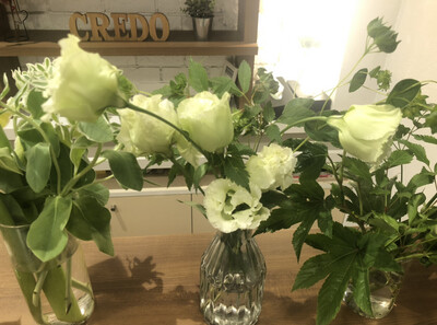 お祝いでいただいたお花も店内を明るくしてくれています。オーナーのお花と合わせてご覧ください♪