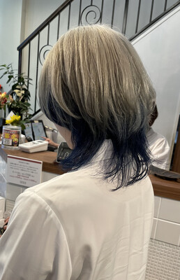 今回の写真はハイトーンインナーのお客様です。後ろの襟足はインナーの色になるように範囲を考えてカットとカラーをさせていただきました。