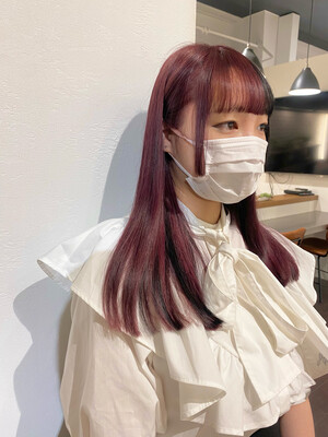 毛先はピンクシャンプーの残留がありましたが、今回は赤ということでリタッチのみの施術で◎