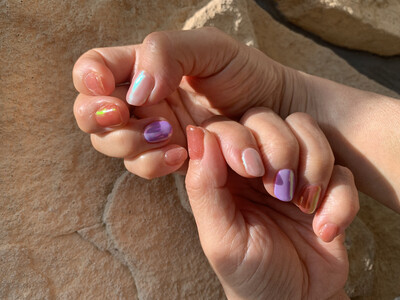 たくさんのお色で仕上げたお客様ネイルですが、ミラーで光を施したり、マグネットの輝きでウルウルに仕上げました。