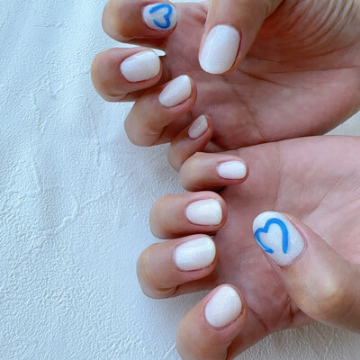 シンプルなデザインですが、ベースはキラキラ、ブルーのハートはクリアなぷっくりでトレンドをおさえたデザインです♡