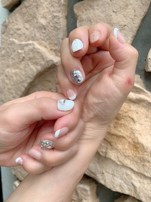 ポイントにアクセサリー要らずのきらきらの埋め込みアートをしてみました。