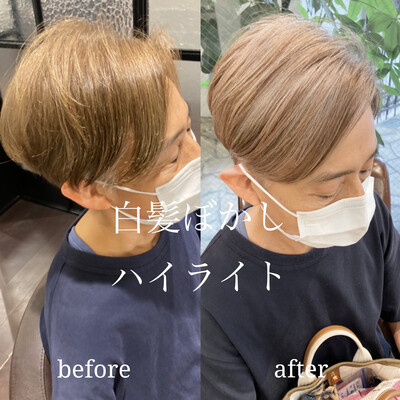白髪率によってハイライトの入れ方、白髪に対しての染まり具合など、