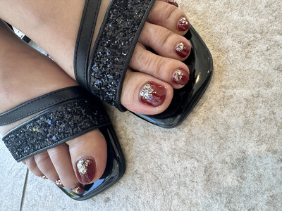 フットネイルもボルドーやべっ甲のブラウンなど、深みのあるカラーが人気です♡