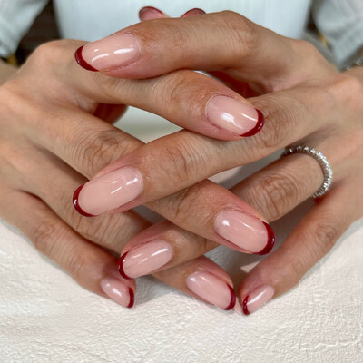 いつものフレンチネイルをボルドーに変えるだけで秋っぽいネイルにすることができます!!