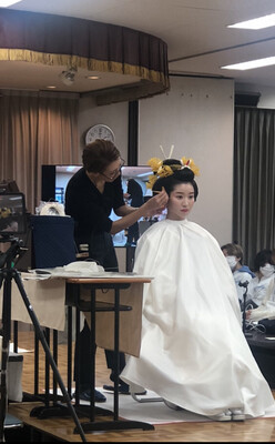 内容は本場京都で修行した日本髪の文金高島田の授業です。聞いたことがある方もいらっしゃると思いますが、若い方はあまり馴染みがないと思います。舞妓さんなどを思い出すとイメージが湧きますよね!あの髪型を七五三や結婚式でやりたい方もいると思います。私も日本髪を習い、七五三で施すことも多々ありました。