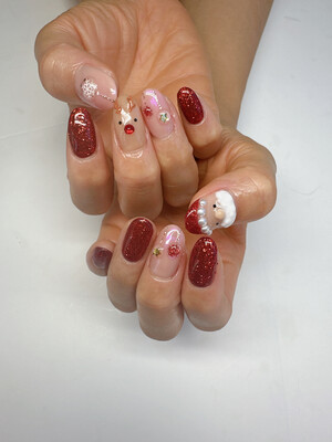 今年のクリスマスネイルはいつもよりサンタクロースデザインのオーダーが多いです♡