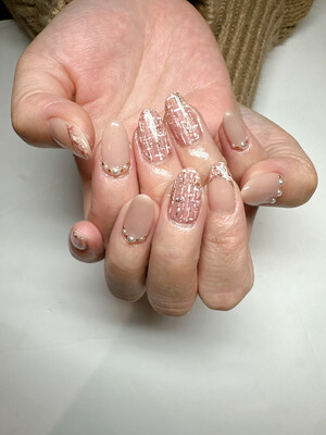 淡いピンクのツイードとマグネットで冬のふんわりネイル♡
