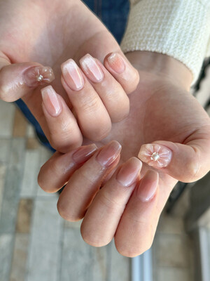 クリアなベージュにチークネイル♡