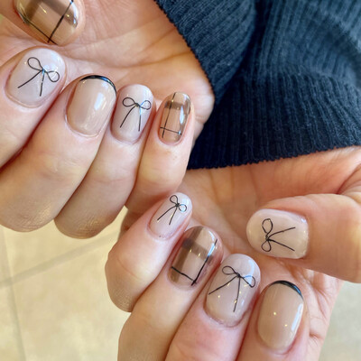 ワイヤーで作ったリボンがポイントのネイルです♪