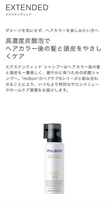 ヘアカラー後、アルカリ性に傾いた髪と頭皮を整え、健やかな状態に保ちます。エクステンティッド シャンプーの泡は、高濃度炭酸を配合した濃密で持続性のある泡質です。マイクロ炭酸泡がヘアカラー後の汚れや気になるニオイを洗い落とします。ヘアカラー後の髪と頭皮に残った臭いを心地よい香りに調和させます。