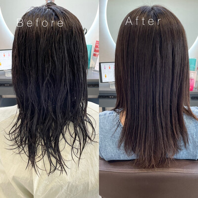 この方には、施術後のトリートメントで脂質を補給できるオージュアの保湿ライン、クエンチでしっかり補修させていただき、しっとりまとまる髪に仕上げました。