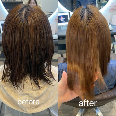 髪や癖が強い方はアルカリの方がおすすめですが、少しボリュームが気になる方、ダメージによって縮毛矯正がかけるのが難しい方は是非酸性ストレートおすすめです*