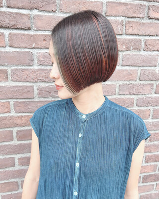 カットラインをパッっとだしたボブスタイル。毛量が多いタイプのお客様ですが、