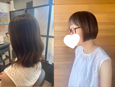 お客様スタイルはばっさりミニボブに♡