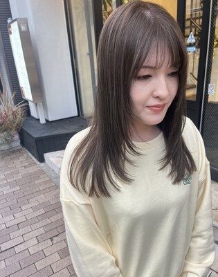 全体にたっぷりハイライトを入れた透け透けグレージュカラー*