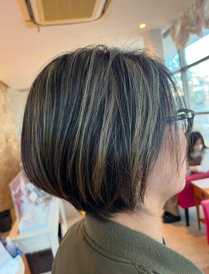 白髪ぼかしカラー!トップのみスライシングでブリーチをしオンカラー!