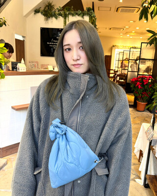 少しグレーを感じさせるオリーブカラーで冬らしいヘアスタイルに!
