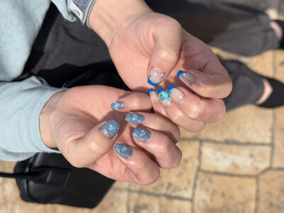 いつもブルーですが、今回はキラキラしつつブルーにしてもらいました!