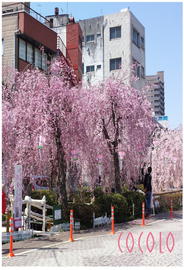 満開の枝垂れ桜の下、サラサラ流れる