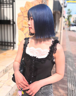 ブルー×ボブスタイル