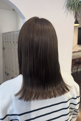 青で染めると青にはなりませんが、黒髪特有の赤みやオレンジ味を打ち消してくれて柔らかな質感になります!
