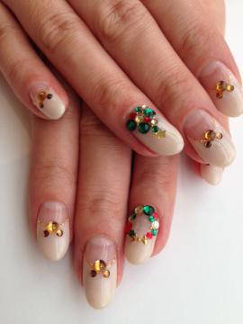 ラインストーンでリースやツリーのデザインをしたり、色を赤やグリーンにするだけでXmas感がUP!!今年はベージュに合わせて大人カワイイXmasネイルも人気です(^^♪