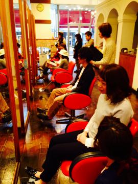 お悩みを引き出し、よりそのお客様にあったシャンプー、トリートメントを選べるよう、オージュアソムリエのスタッフをはじめ、全員で取り組んでいます! みんな朝から爽やかな笑顔でカウンセリングしてますね☆