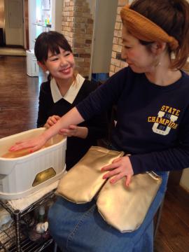 ローズの香りのする、ろうの中に手をいれ、少し時間をおいてマッサージいたします! すると、しっとりすべすべな手になるのです(≧∇≦)