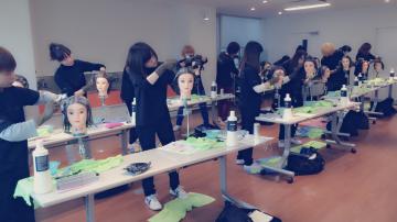 本日は学生の皆さんにカラーの知識や塗布テクニックを教えるべく