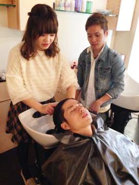 足利デザイン美容学校から実習にきてくれた、ひろきさん。4日目の最終日にシャンプーの体験をしました。実際に美容室で働くのは初めてにも関わらず、積極的に手伝ってくれました(^_^)