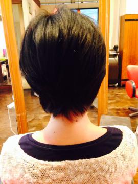 どの角度からみてもメリハリがあり、トップにポイントでパーマをかけるだけで簡単にお手入れができます。