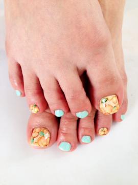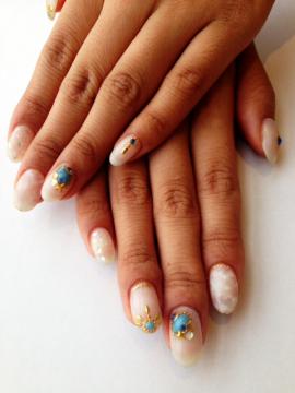 今年の夏はターコイズのストーンを使ったネイルや、貝殻やヒトデのパーツを使ったネイルが人気です。