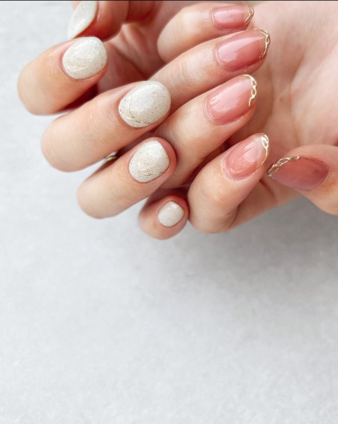 ナチュラルなピンクベースに ゴールドで上品さをプラスした左右で印象を変えたデザイン。人気ですよ!