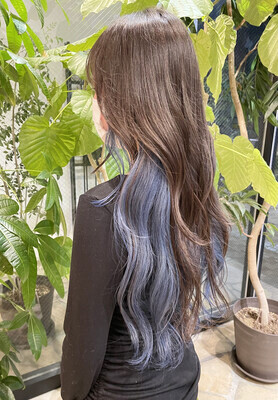 カットテクニックによって見え隠れする青のバランスはぜひスタイリストとご相談ください。黒髪とのコントラストがおしゃれ感を際立たせてくれます。