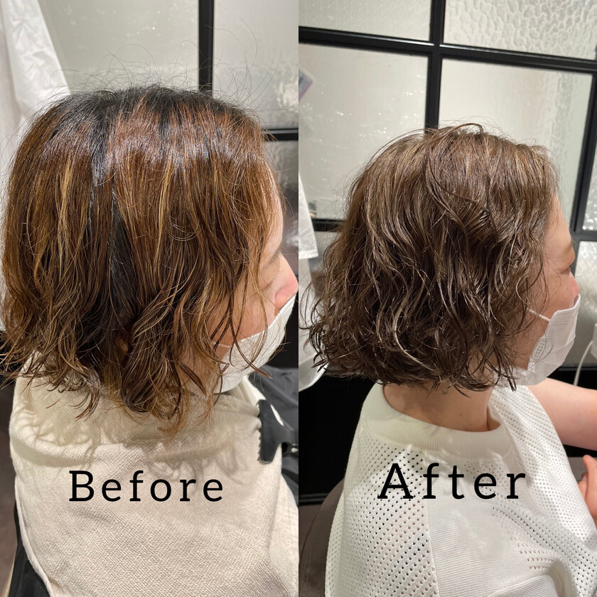 毛先はハイライトを入れていないので、ダメージも最小限にとどめられています。