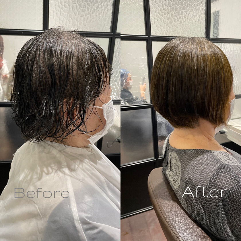 今回のお客様はもともと癖があるお客様で久しぶりの縮毛矯正でした。ショートスタイルなので、毛先がまっすぐになりすぎず、いい収まりが出るように施術させていただきました。