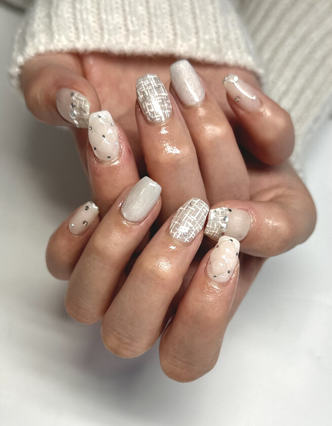 ツイード、マグネット、キルティング、オールホワイトで冬らしく♡