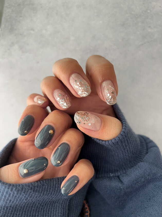 人気のスタッズネイル。ラメと組み合わせてきらきらに!
