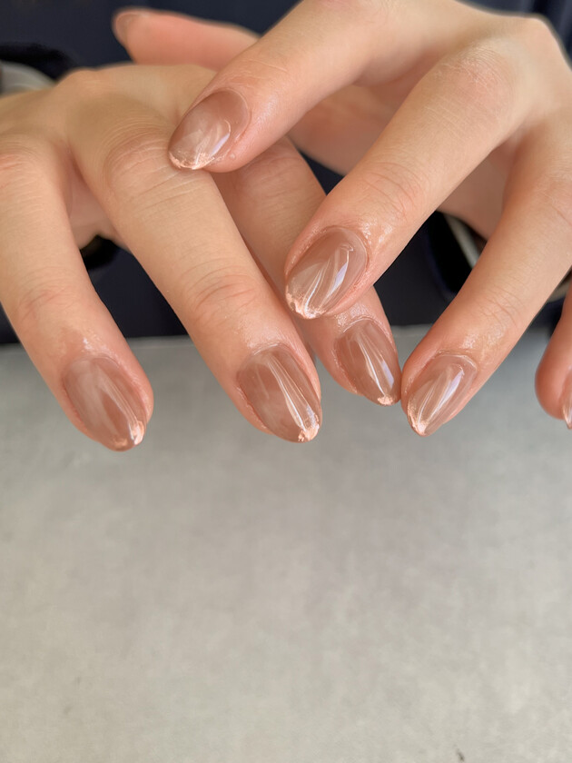 ピンクのマーブルデザインにさりげなくミラーをプラス。