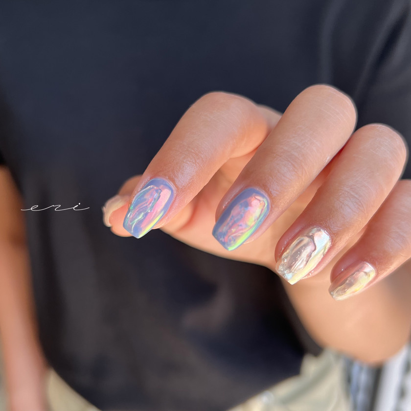 爽やかなカラーにぷっくりとジェルをのせた夏らしいデザイン