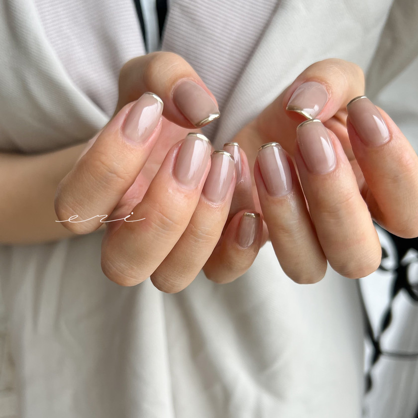 グレージュベースにゴールドを細く入れたデザイン