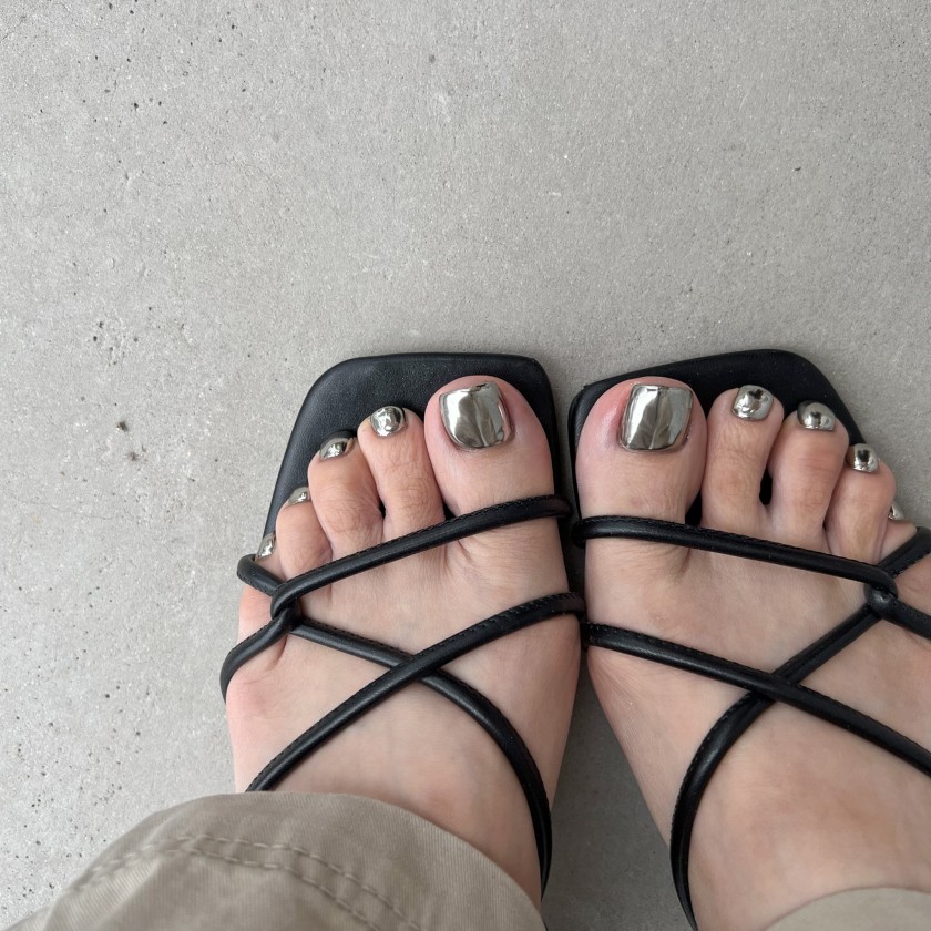 メタリックなデザインはブラックサンダルにピッタリです!