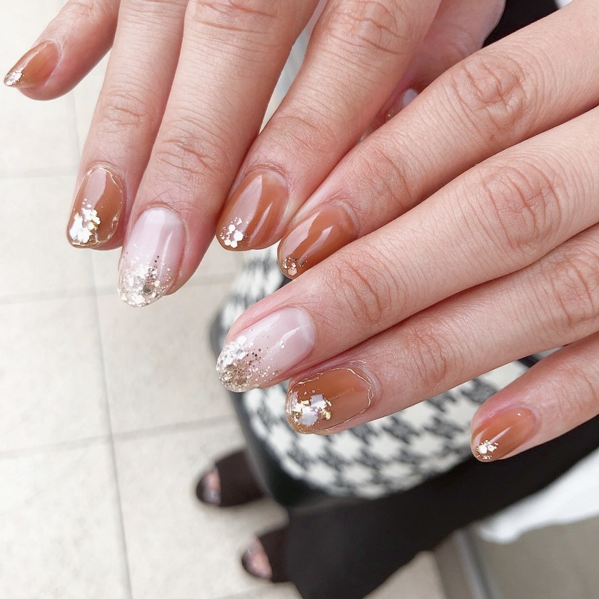 シェルとグリッターもブラウンで合わせれば一気に秋デザインに♡