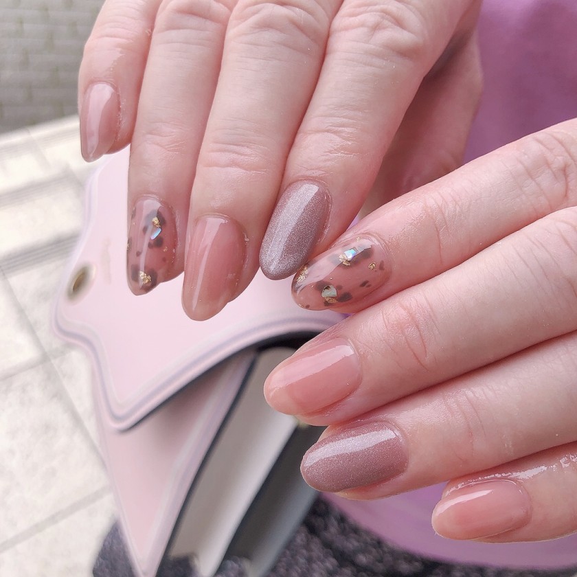ピンクのレオパードとマグネットで秋のオフィスネイル