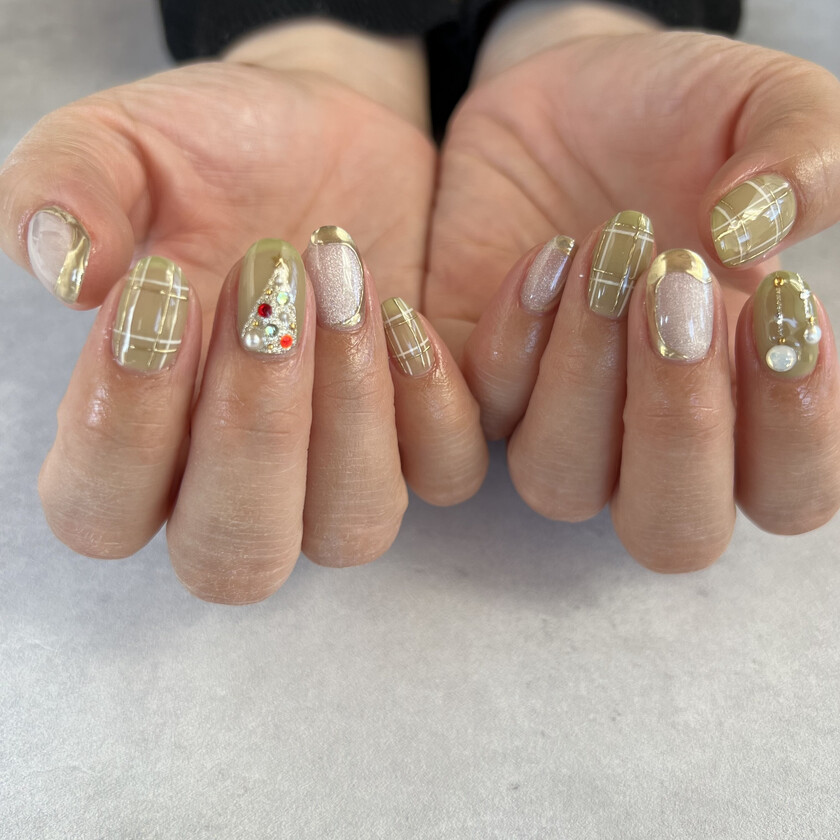 チェック柄とキラキラツリーで大人かわいいクリスマスデザインに。