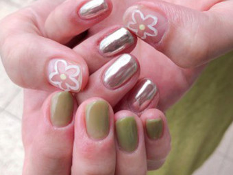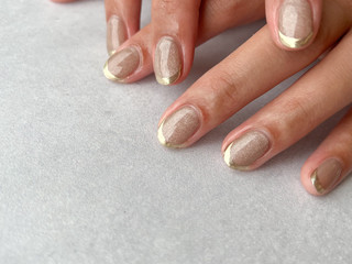 ベースにマグネットジェルを入れてキラキラに ミラーフレンチで大人なデザインです