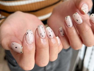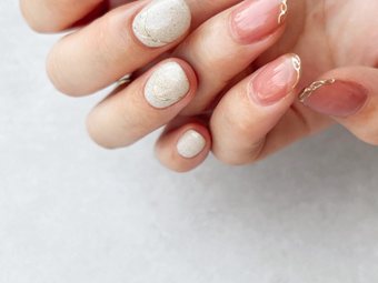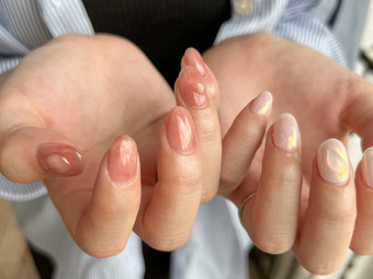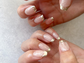 ナチュラルなピンクベースに ゴールドで上品さをプラスした左右で印象を変えたデザイン。人気ですよ!